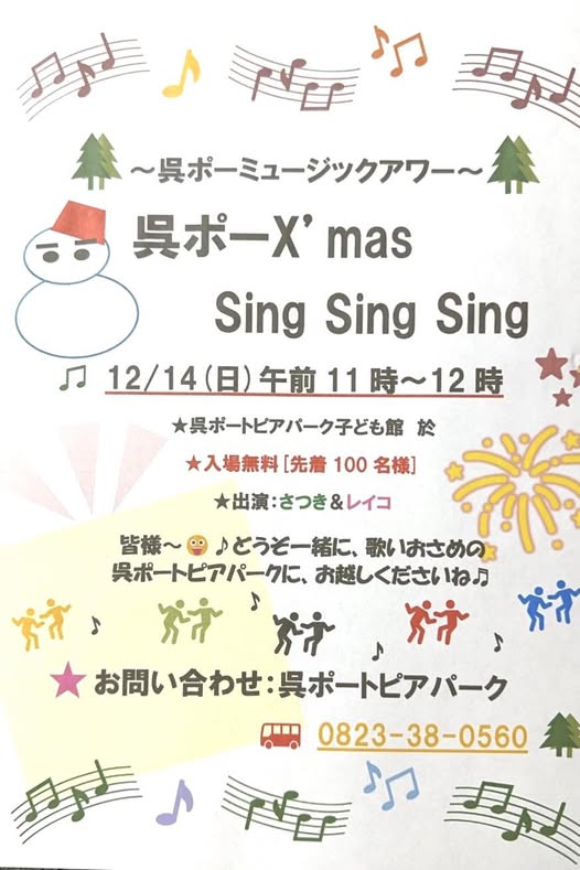 12月14日(日)呉ポーミュージックアワー“呉ポーXmas Sing Sing Sing”
