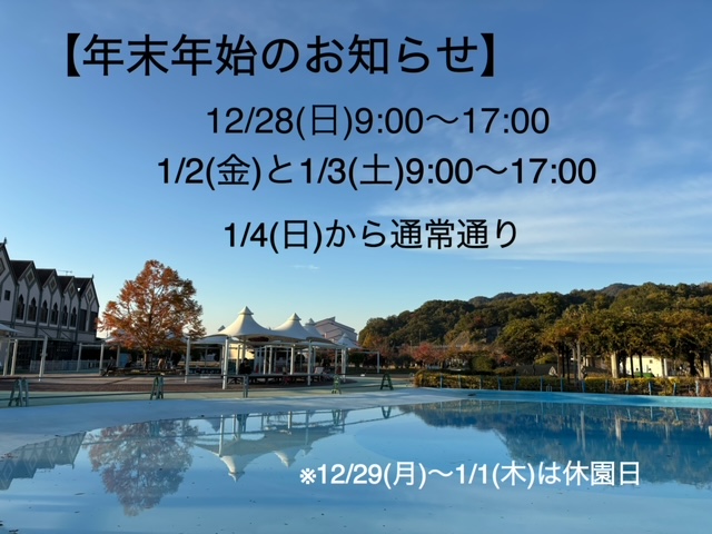 【年末年始の開園時間・休園日について】※駐車場も同時刻に閉鎖します。